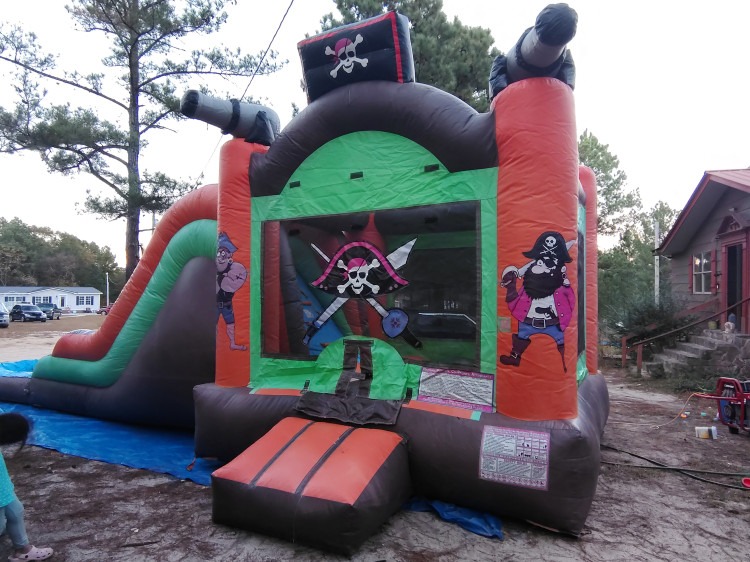 Set sail for nonstop fun with this Pirate Combo — a compact inflatable play unit that combines a bouncing area, climbing ramp, and slide all in one swashbuckling package. Designed for kids to jump, scramble, and slide safely, it features enclosed mesh walls for visibility and airflow, a soft landing zone at the slide base, and bright pirate-themed graphics that spark imaginative play. Easy to supervise and perfect for backyard parties, school events, or community gatherings, the Pirate Combo delivers active, age-appropriate entertainment while keeping kids contained and secure. Ideal for young adventurers who love climbing, sliding, and pretend-play on the high seas.